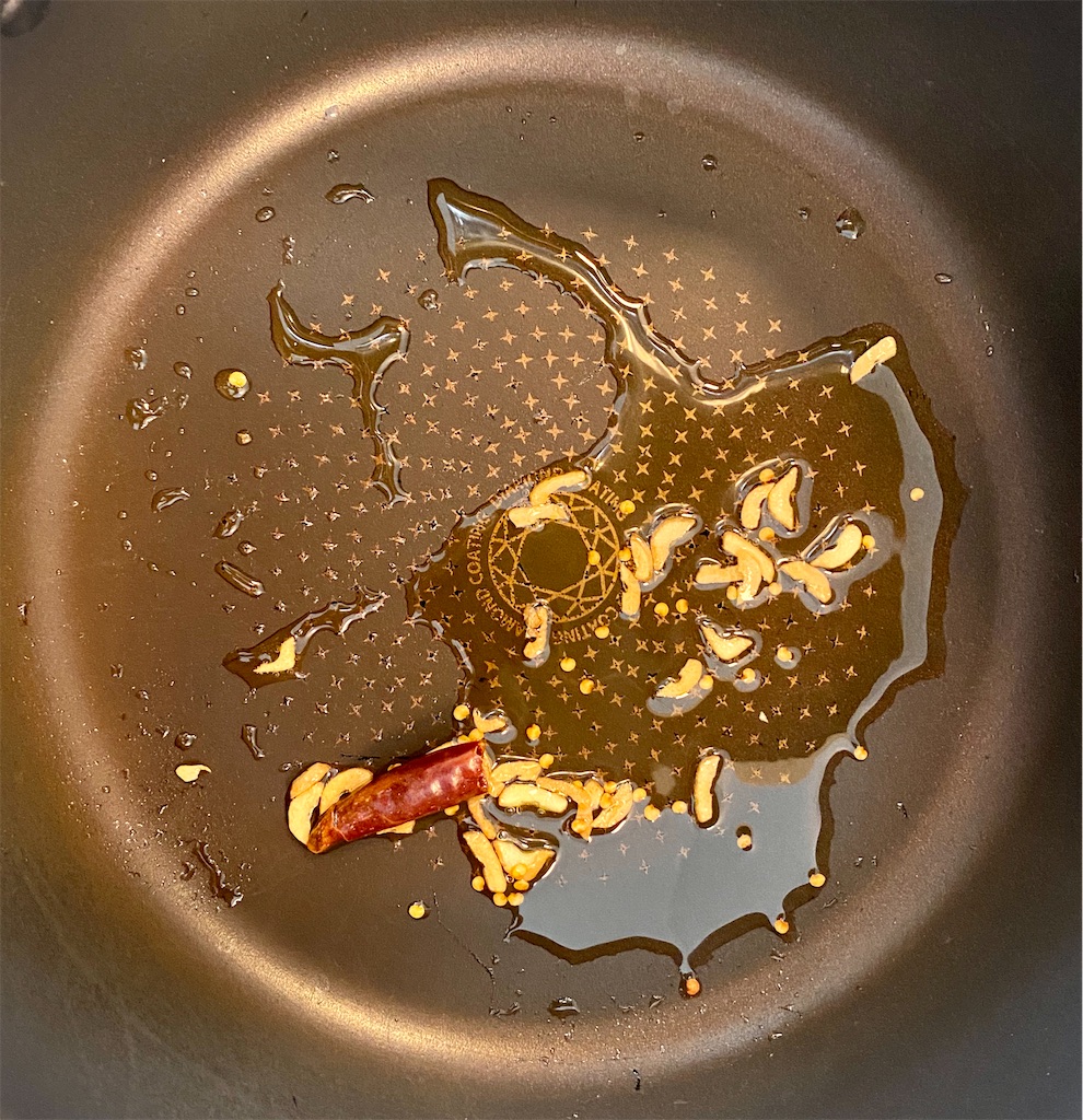 『家のコンロでできる"弱火よりさらに弱い、消えるか消えないかの火力"でニンニクがふつふつしてからキツネ色になるまでの間を"出来るだけ長く"して、しっかりオイルにニンニクの香りを移す事。そしてそのオイルをしっかりフライパン全体に広げて馴染ませる事』
